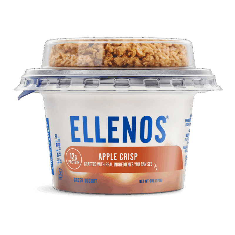 Savor the essence of fall with Ellenos Apple Crisp yogurt! Every cup includes a delightful blend of locally-sourced Washington State apples, cinnamon, nutmeg, and vanilla extract. Topped with a spiced cookie crumble, this treat will bring you the taste of autumn year-round!