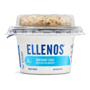 Ultra-creamy vanilla bean Greek yogurt topped with real birthday cake crumbs, festive sprinkles, and 13g of protein for a delicious celebration in every bite!