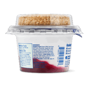 Ingredients: Raspberry Yogurt (Grade A Milk, Cane Sugar, Milk Protein Concentrate, Raspberries, Eggs, Raspberry Juice Concentrate, Butter, Lemon Juice, Natural Flavor (to preserve freshness), Fruit and Vegetable Extract (for color), Honey, Live Active Cultures*), Amber Graham (Whole Wheat Flour, Butter [Cream, Lactic Acid], Brown Cane Sugar, Honey, Salt, Cinnamon).